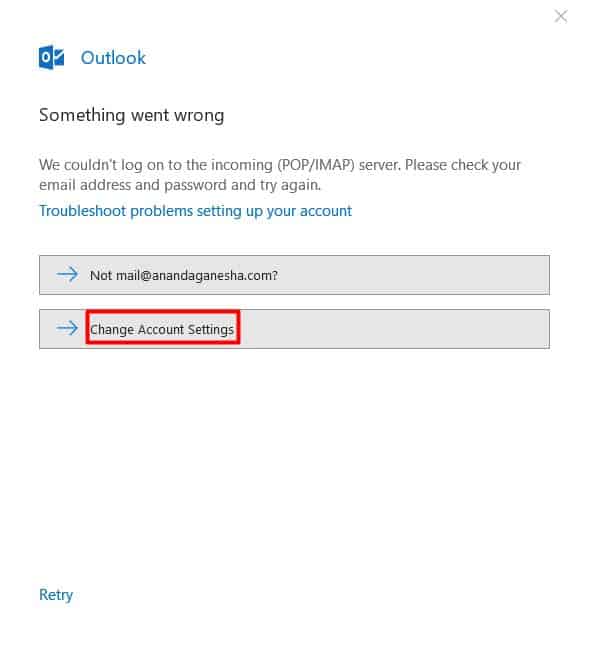Eğer bir hata penceresi gözükürse Change Account Settings’e (Hesap Ayarlarını Değiştir) tıklayarak ayarları yeniden yapılandırmanız ve bütün ayarların doğru olduğundan emin olmanız gerekir.